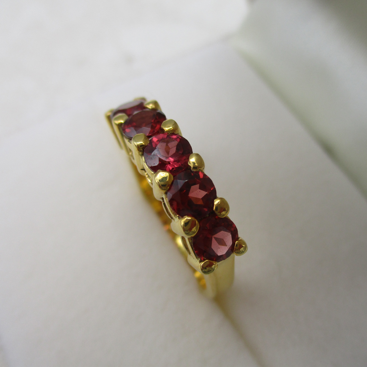 Our Feel Good ring, is a gemstone ring you will have great joy of wearing in years to come. Available in two stunning versions: red garnet and white topaz. This design is made of sterling silver 925 with a 0.8 micron gold plating Authenticity Certification is provided