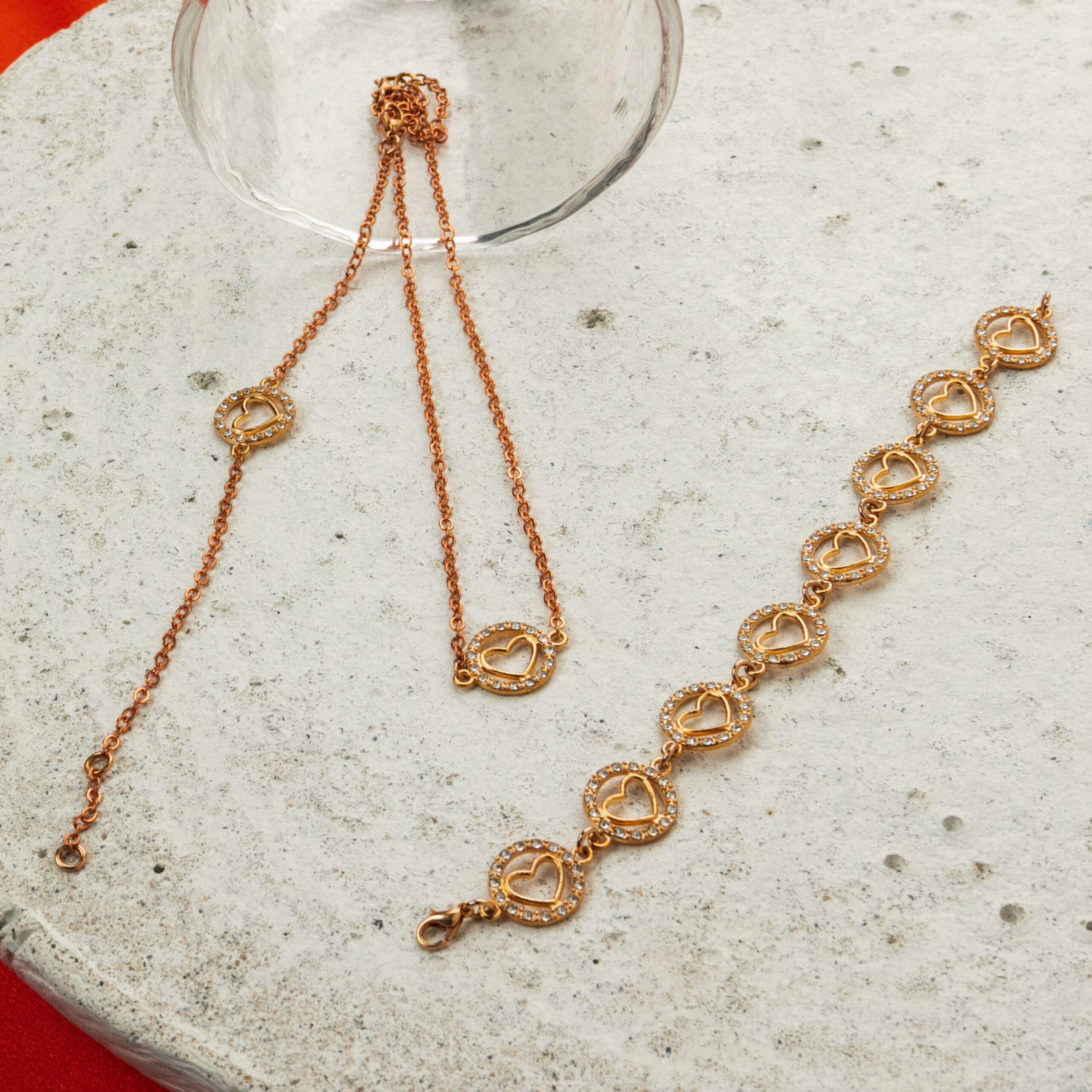 Lotis was a nymph who was transformed into a lotus tree to escape Priapus, in Greek mythology. She is the spirit behind this design. A lovely heart charm embedded with fifteen clear white crystals is the component that multiplied eight times form this distinct rose gold bracelet.