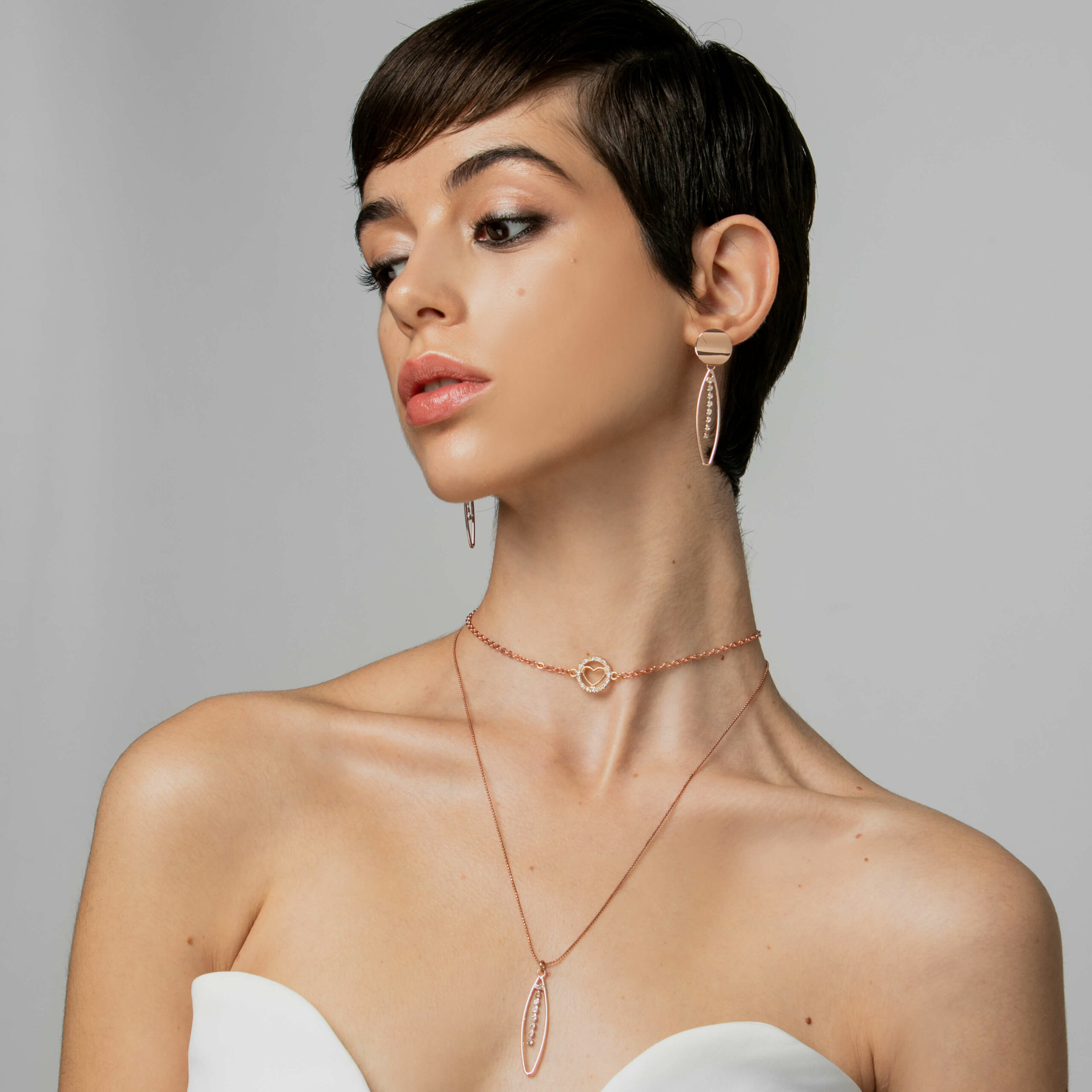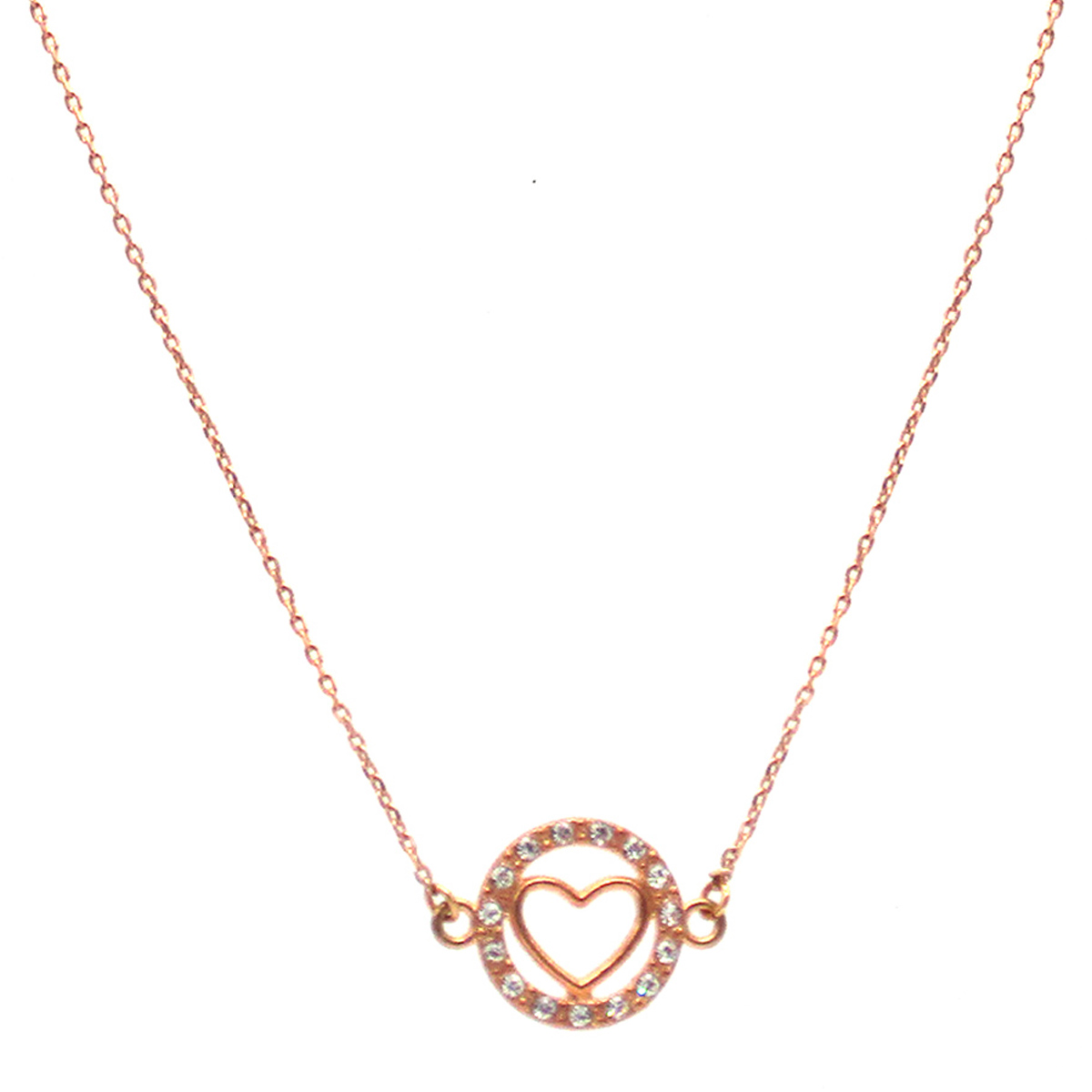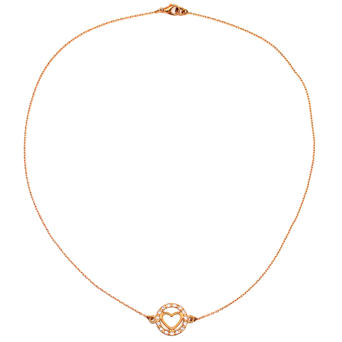 Lotus was a nymph who transformed herself into a lotus plant to escape from Priyapos, in Greek mythology. She is the spirit behind this plan. A heart charm embellished with fifteen transparent white crystals forms this necklace with a rose gold chain.