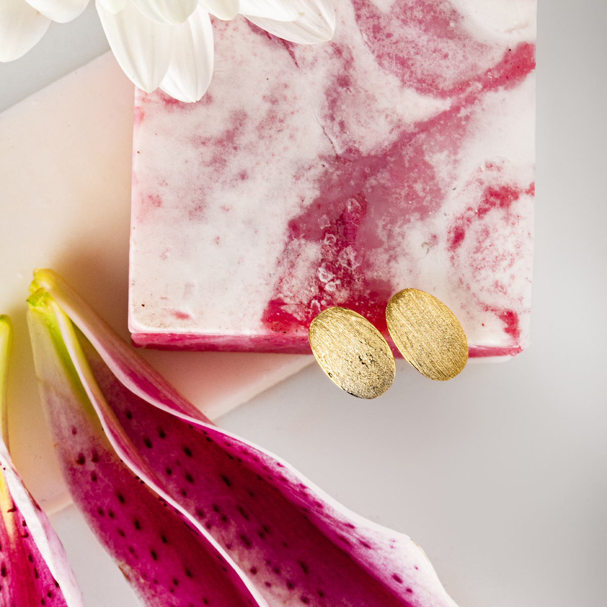 Gold plated sterling silver 925 stud earrings, 9.7 x 15 mm