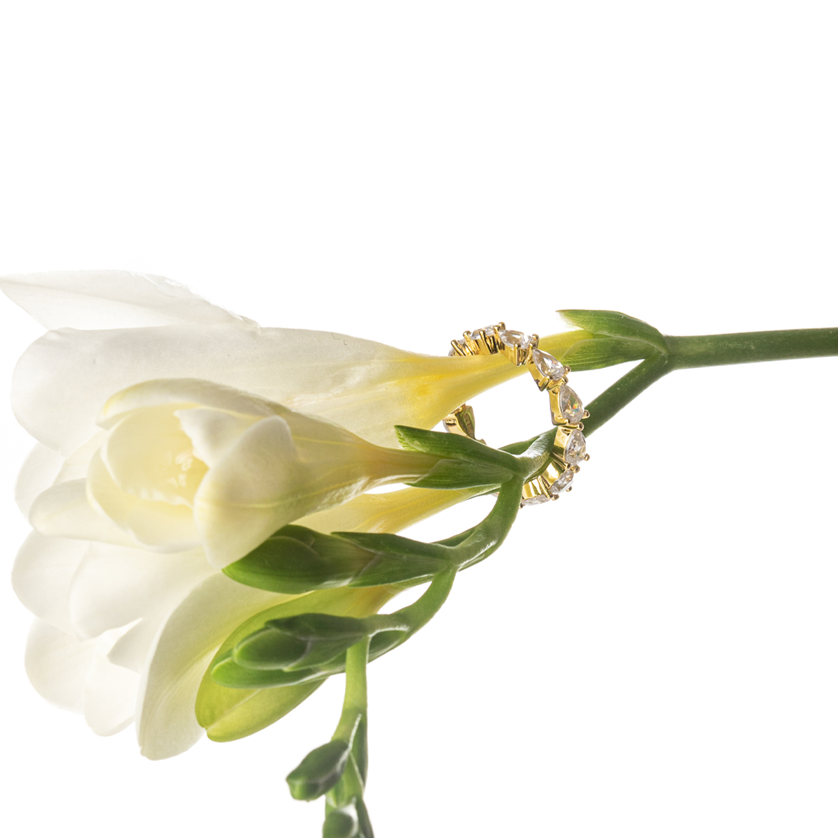 An eternity ring of another class, as both its size and design makes a great impression. Made of gold-plated 925 silver with brilliant drop-cut zircons. Available in size 6 and 7.