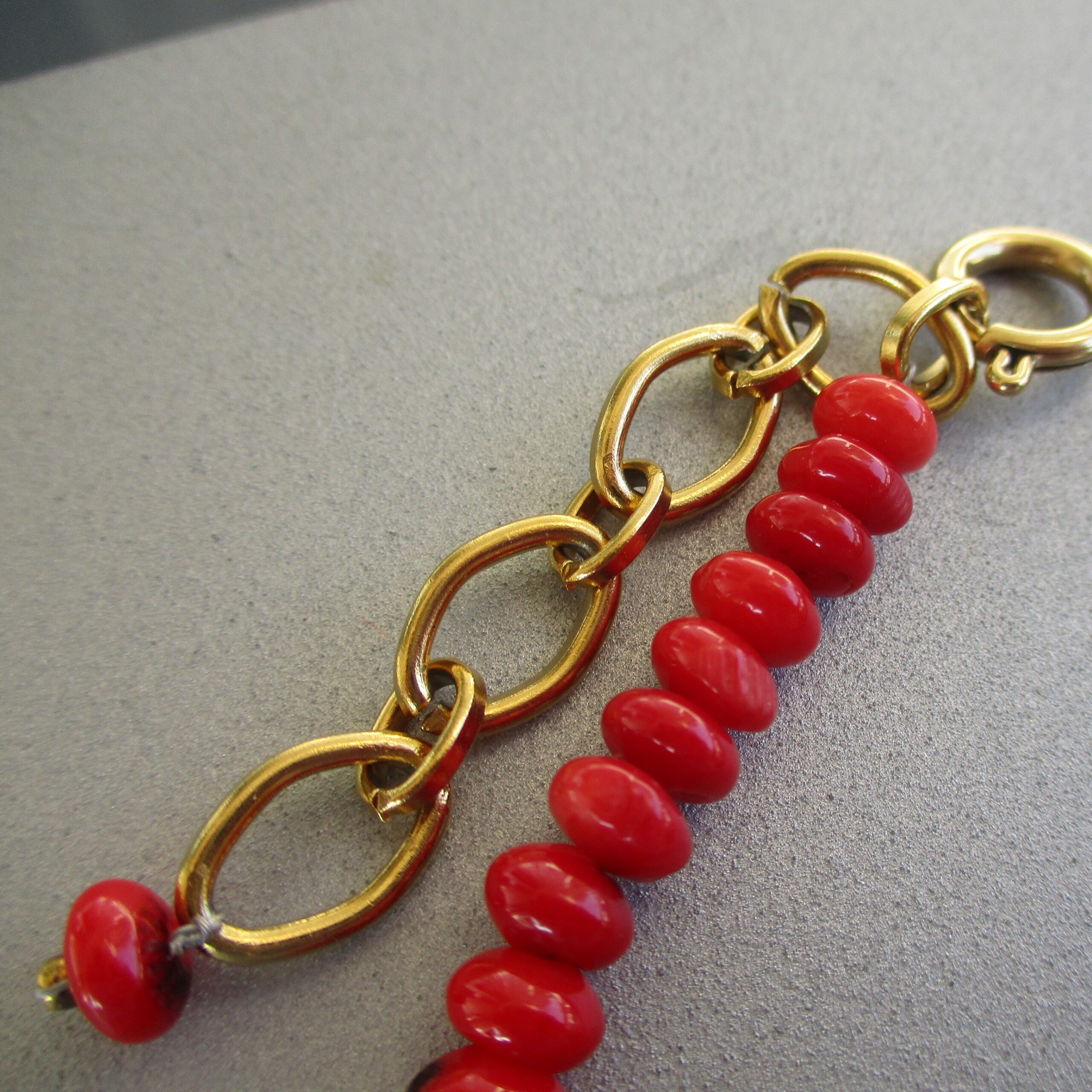 Coral and hematite anklet, length 22 cm plus 5 cm extension