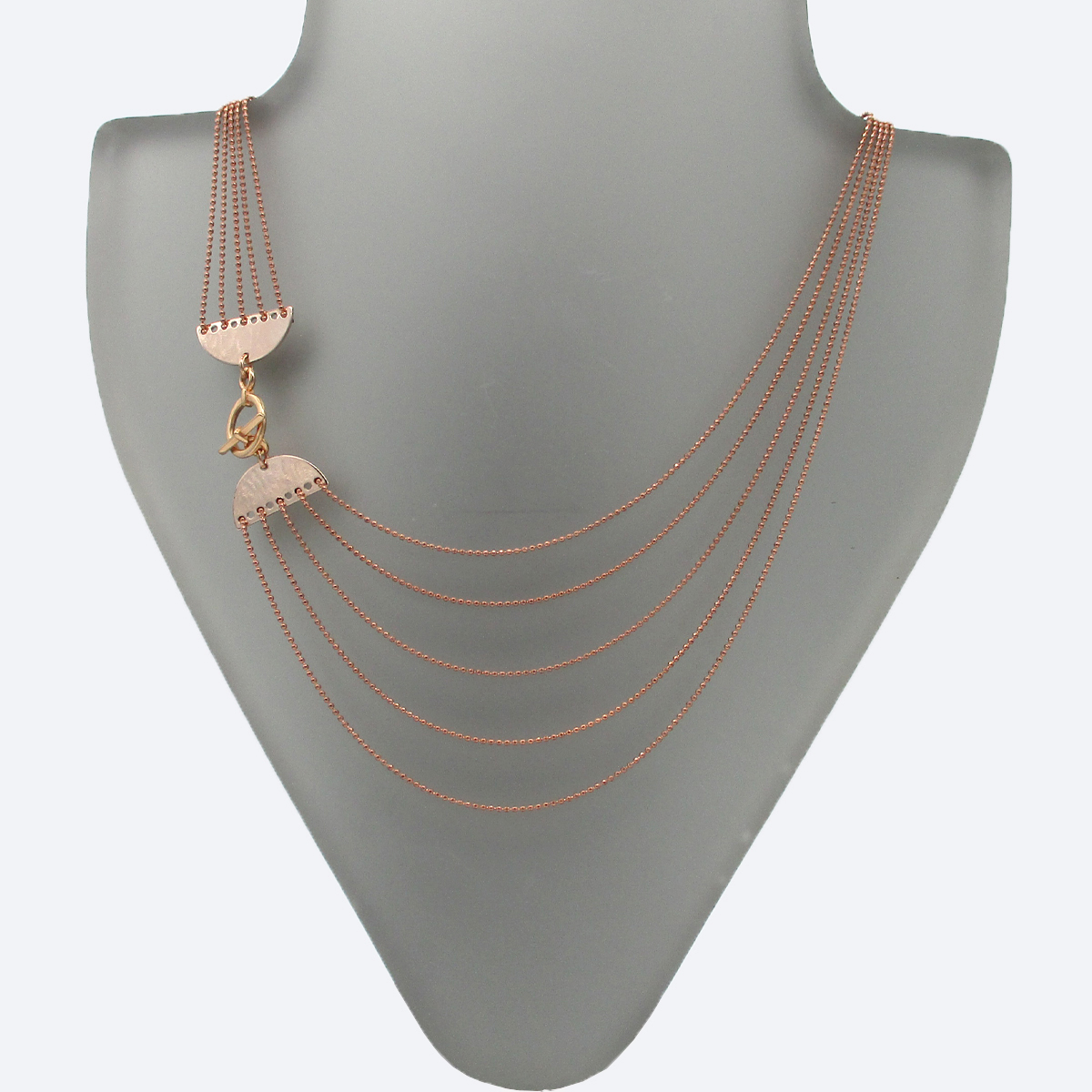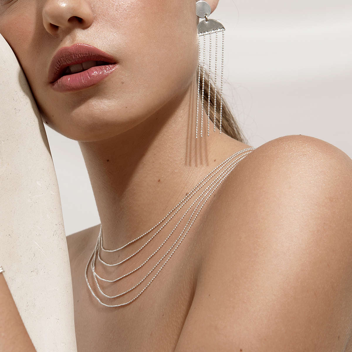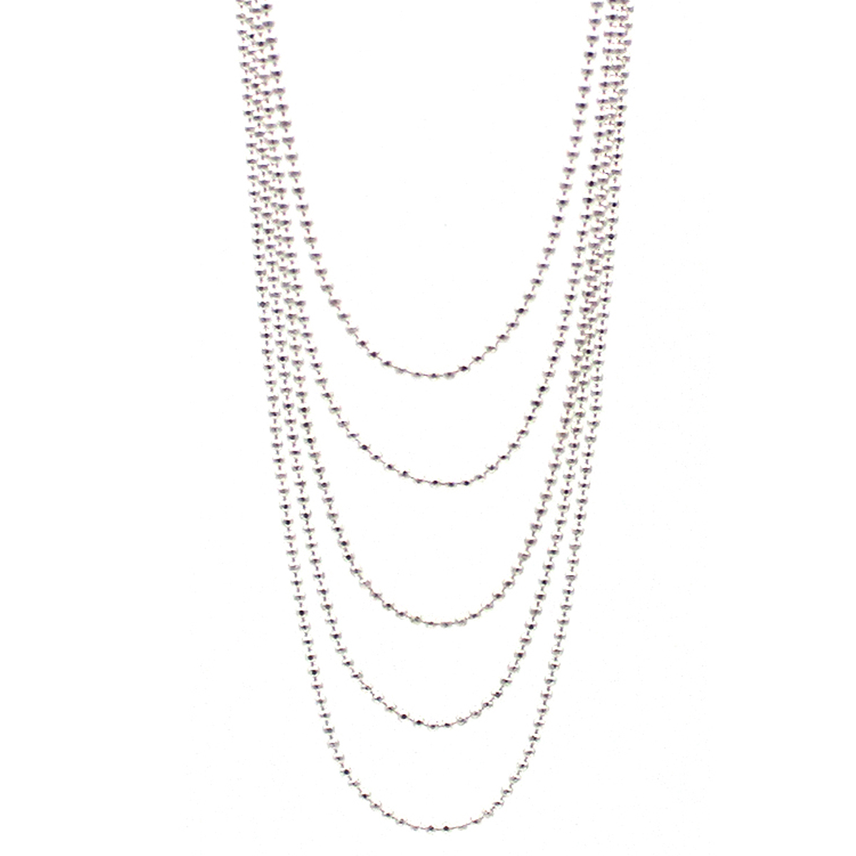 Η Σειρήνα ήταν ένα πλάσμα που προσέλκυε τους ανθρώπους με τραγούδια, στην ελληνική μυθολογία. Είναι το πνεύμα πίσω από αυτό το εξαίσιο σχέδιο. Πέντε λεπτεπίλεπτες αλυσίδες μπαλάκι στερεώνονται σε ένα γυαλιστερό μεταλλικό τμήμα, το οποίο κλείνει με ένα κομψό κούμπωμα Τ γύρω από το λαιμό σας.